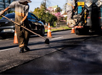 Vias Pavimentadas: Manutenção e restauração de vias pavimentadas, com serviços de restauração de pista de rolamento (fresagem e recapeamentos asfálticos), tapa-buraco, restauração de pavimentos em pedra irregular e bloco de concreto intertravado.
